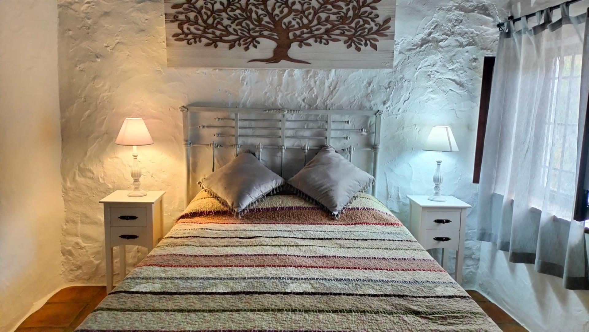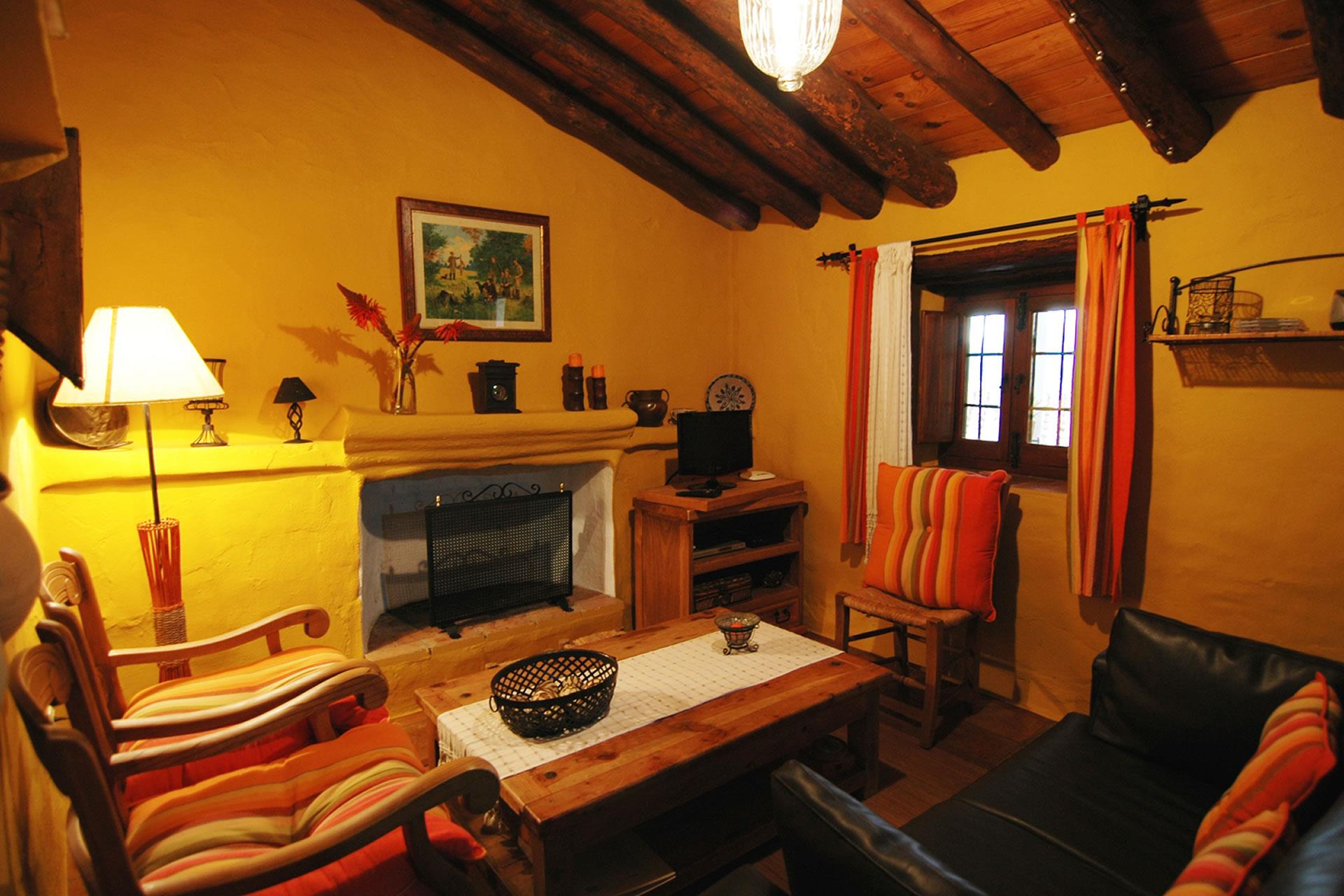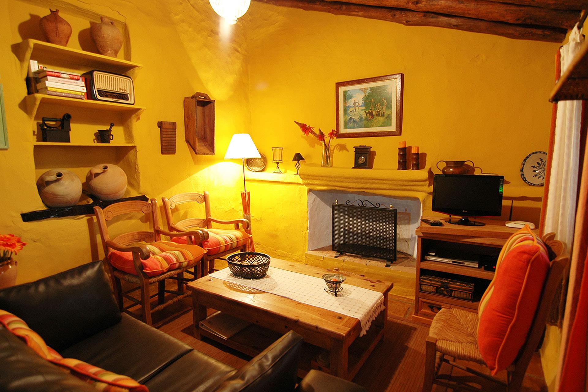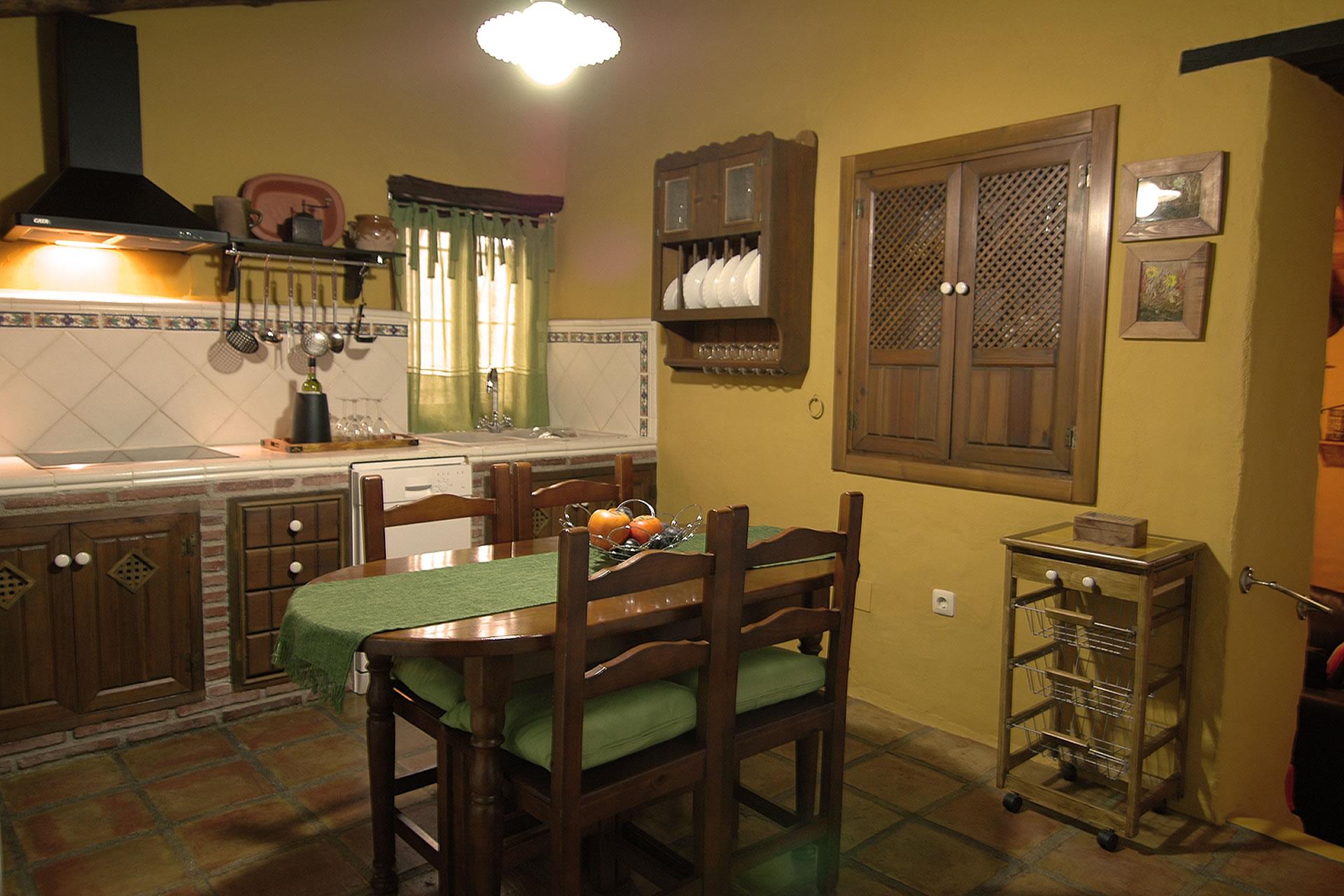Es un cortijo en todos los sentidos de la palabra: en el interior encontramos techos tradicionales con vigas de madera, suelos con lozas antiguas y paredes en ocre que en su conjunto crean un ambiente cálido y típico andaluz. El salón dispone de 4 sillones, chimenea, televisión por satélite y DVD. La cocina está equipada con frigorífico/congelador, vitrocerámica, microondas, lavavajillas y lavadora. Hay 2 dormitorios (uno con cama de matrimonio, otro con 2 camas individuales) y un cuarto de baño con ducha, lavabo y wc.
