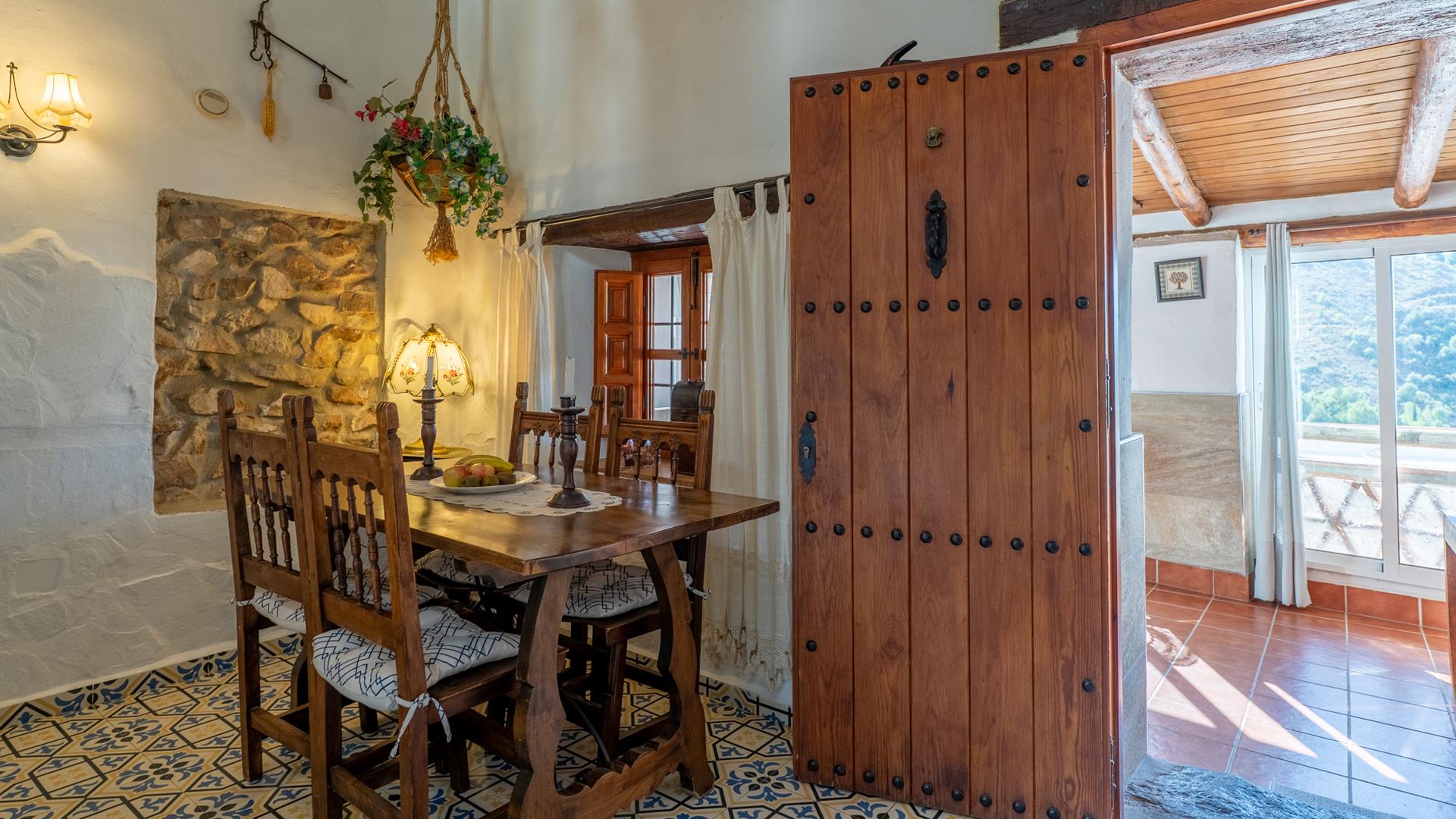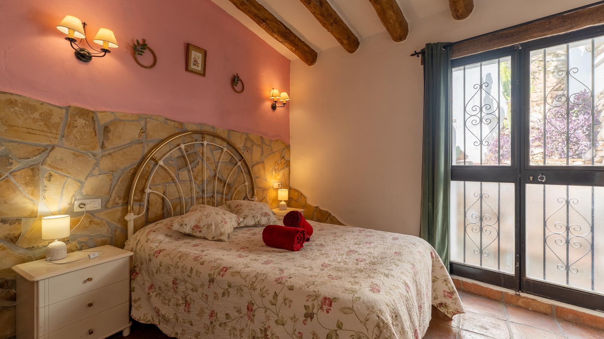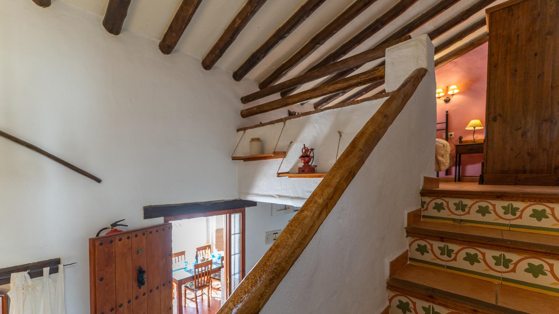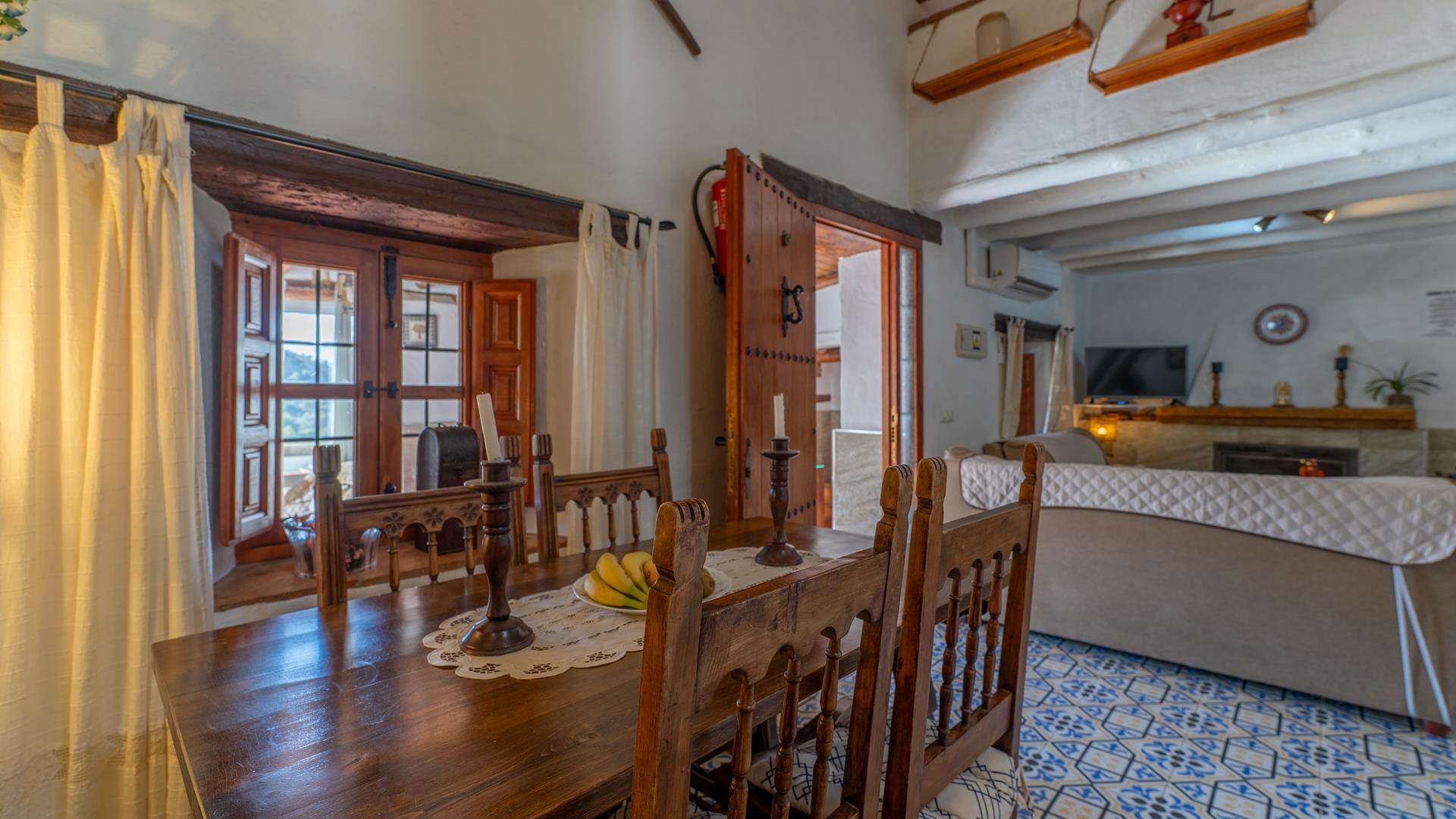 La casa, restaurada por sus propietarios locales, combina el carácter auténtico español con un encanto rústico. En su interior, le recibirán techos con vigas de madera, suelos de terracota y paredes pintadas en cálidos y variados colores que crean una atmósfera acogedora.
