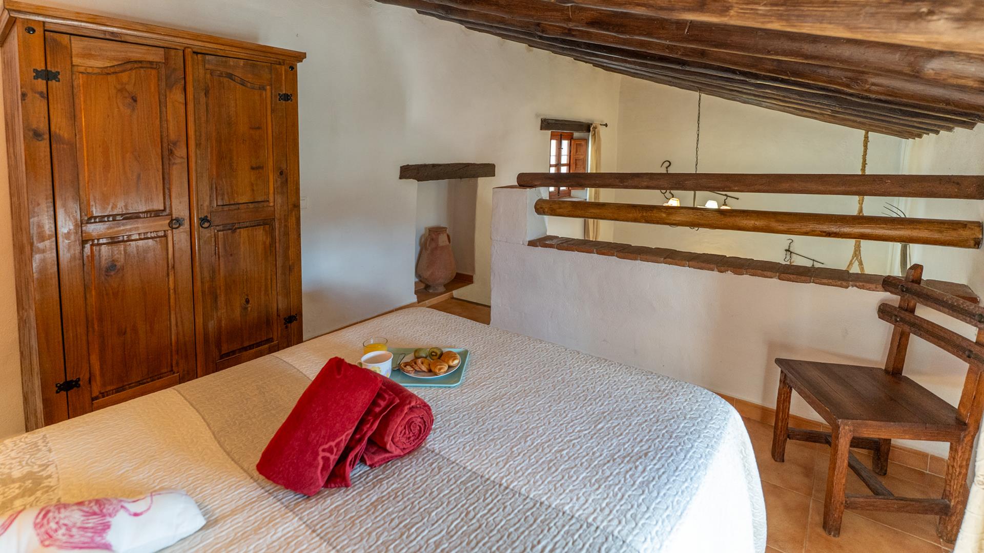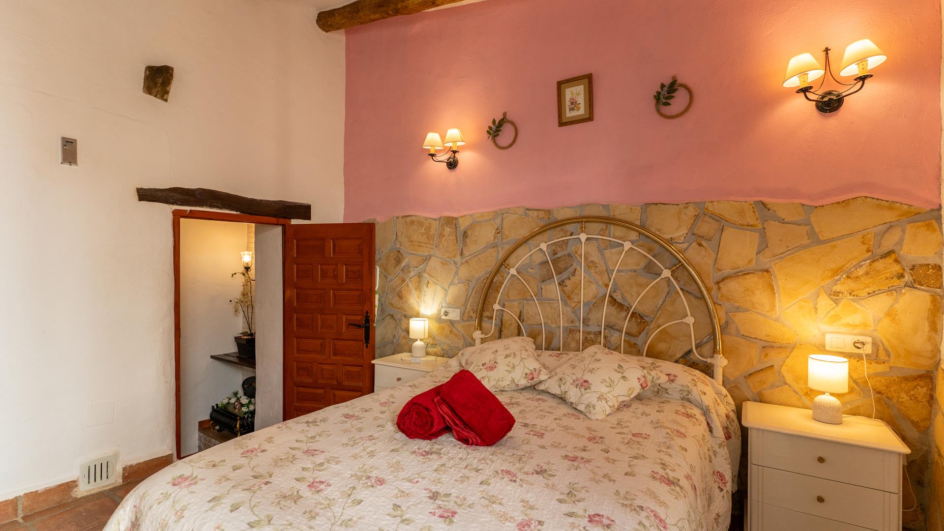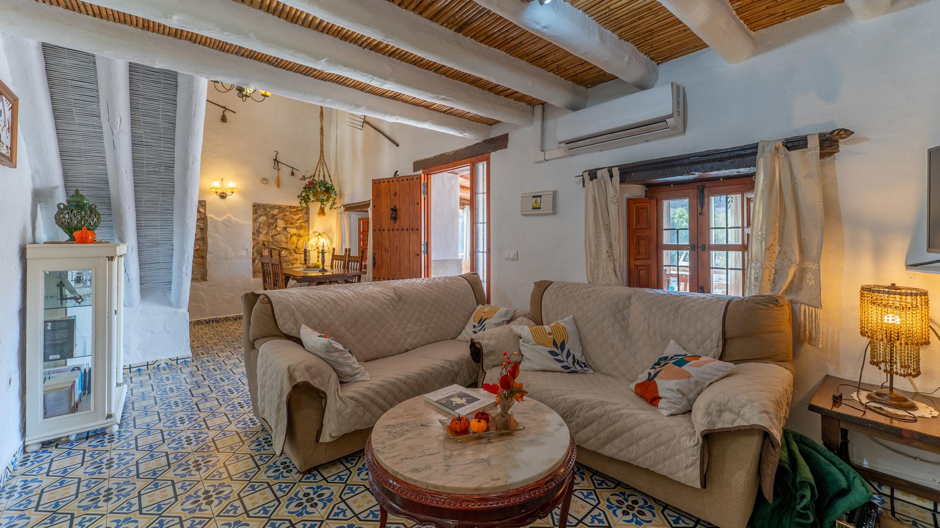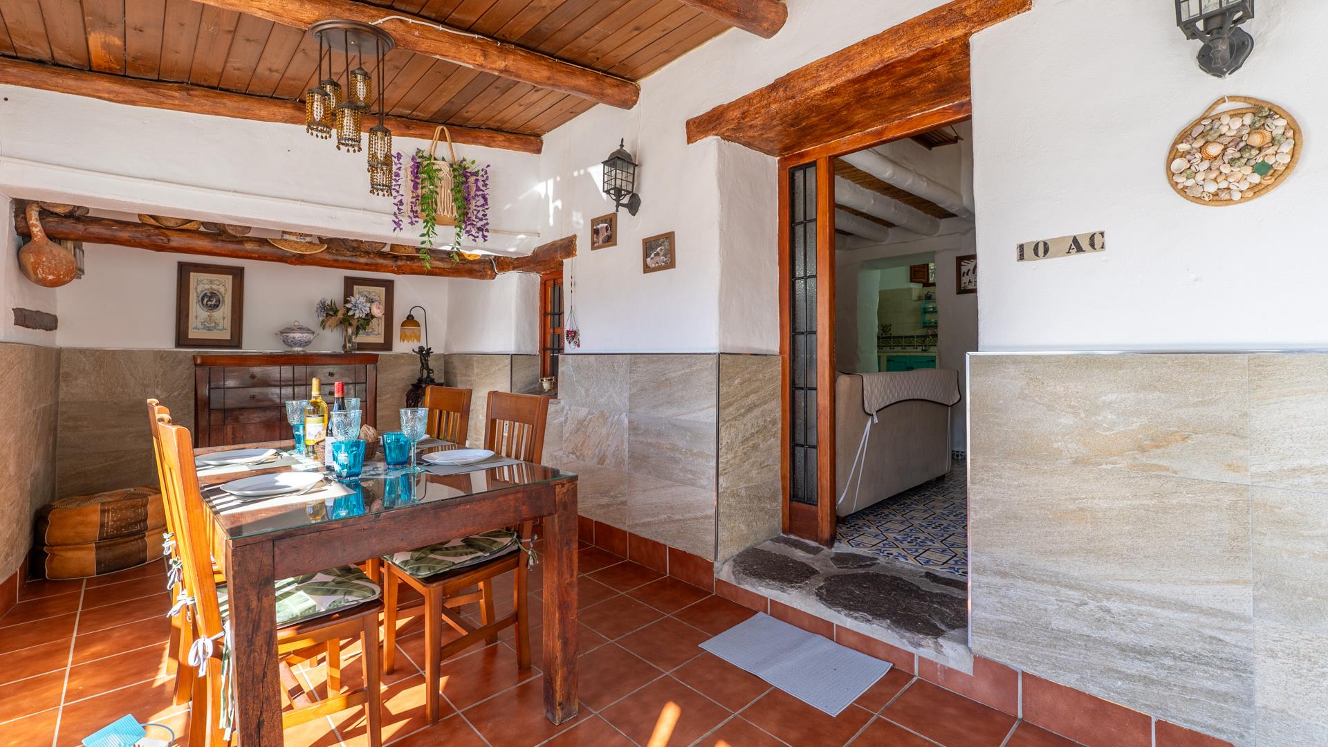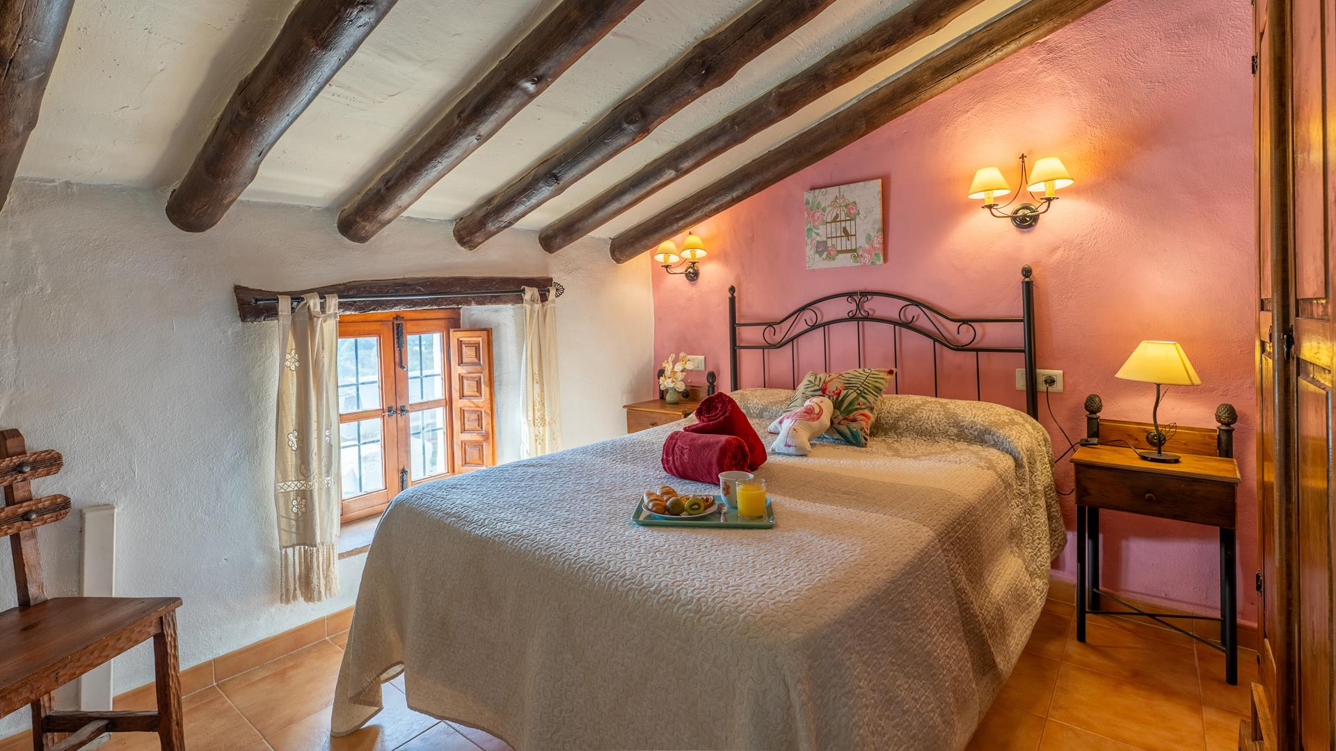 La casa, restaurada por sus propietarios locales, combina el carácter auténtico español con un encanto rústico. En su interior, le recibirán techos con vigas de madera, suelos de terracota y paredes pintadas en cálidos y variados colores que crean una atmósfera acogedora.