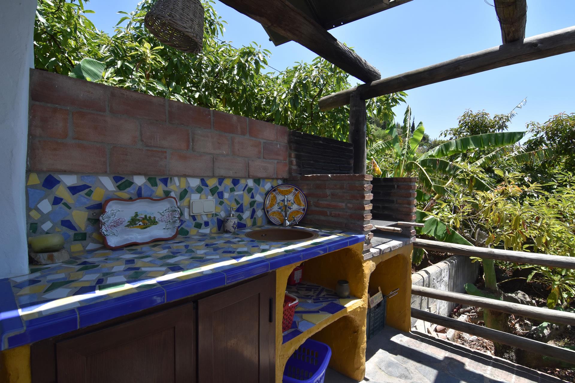 Situado en el terreno propio de la finca, este cortijo ofrece agradables noches de verano para cenar al aire libre junto a la piscina privada con vistas a Frigiliana. Una gran terraza sombreada con muebles de jardín frente a la casa dispone de una zona cómoda para comer al aire libre. Junto a la casa hay una pequeña cocina de verano con una barbacoa incorporada y una segunda zona de comedor con muebles de teca elegantes.