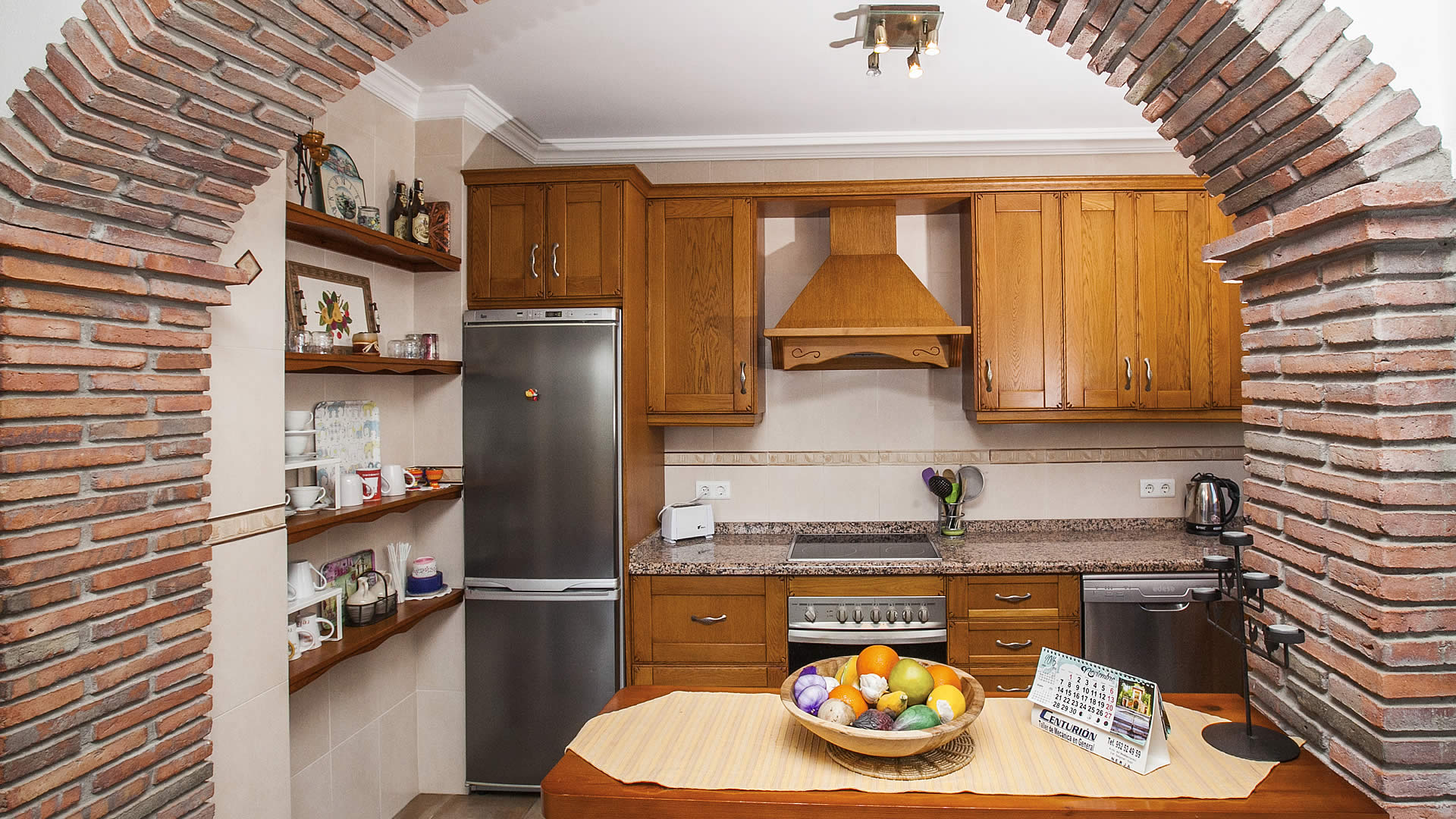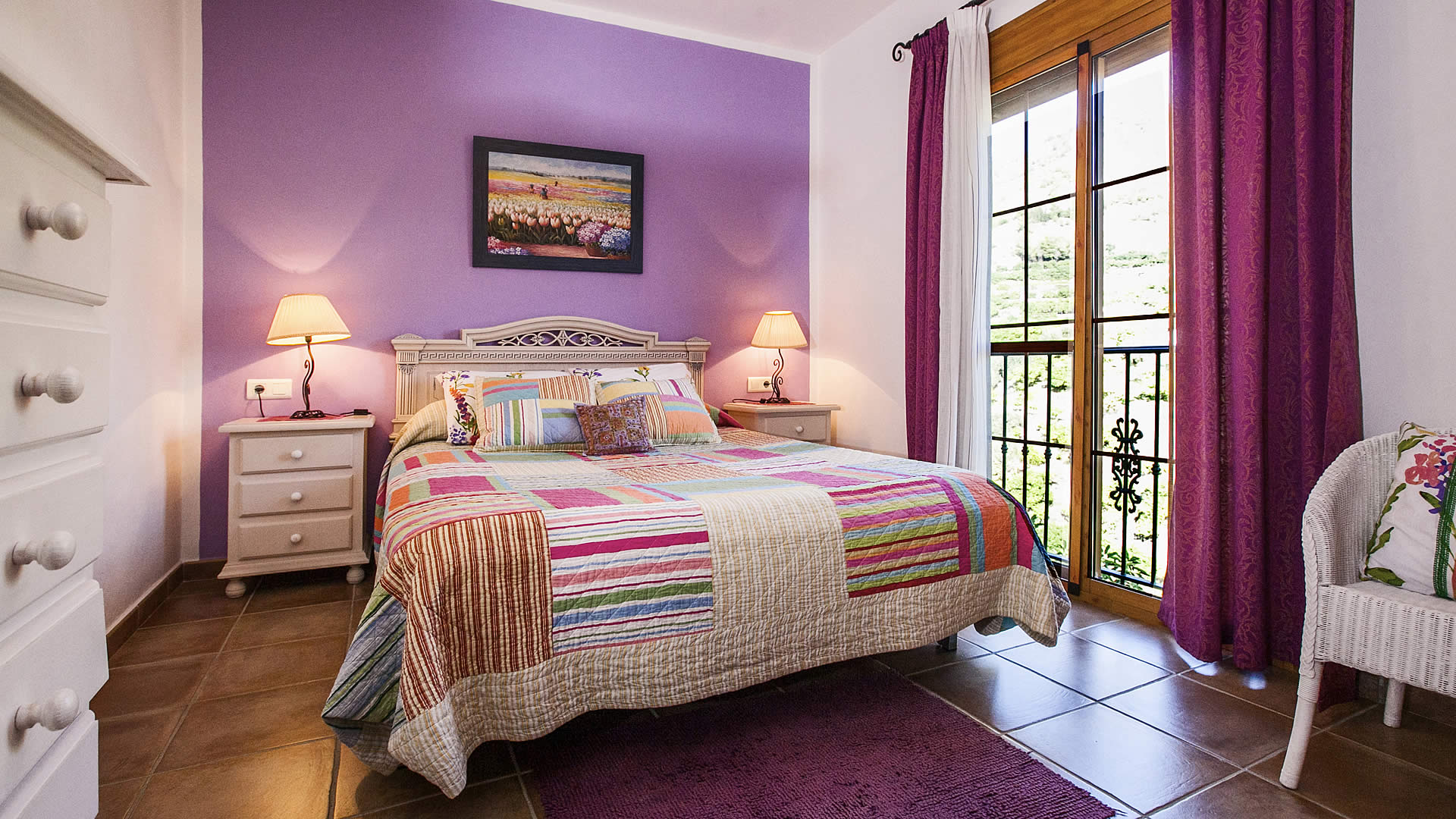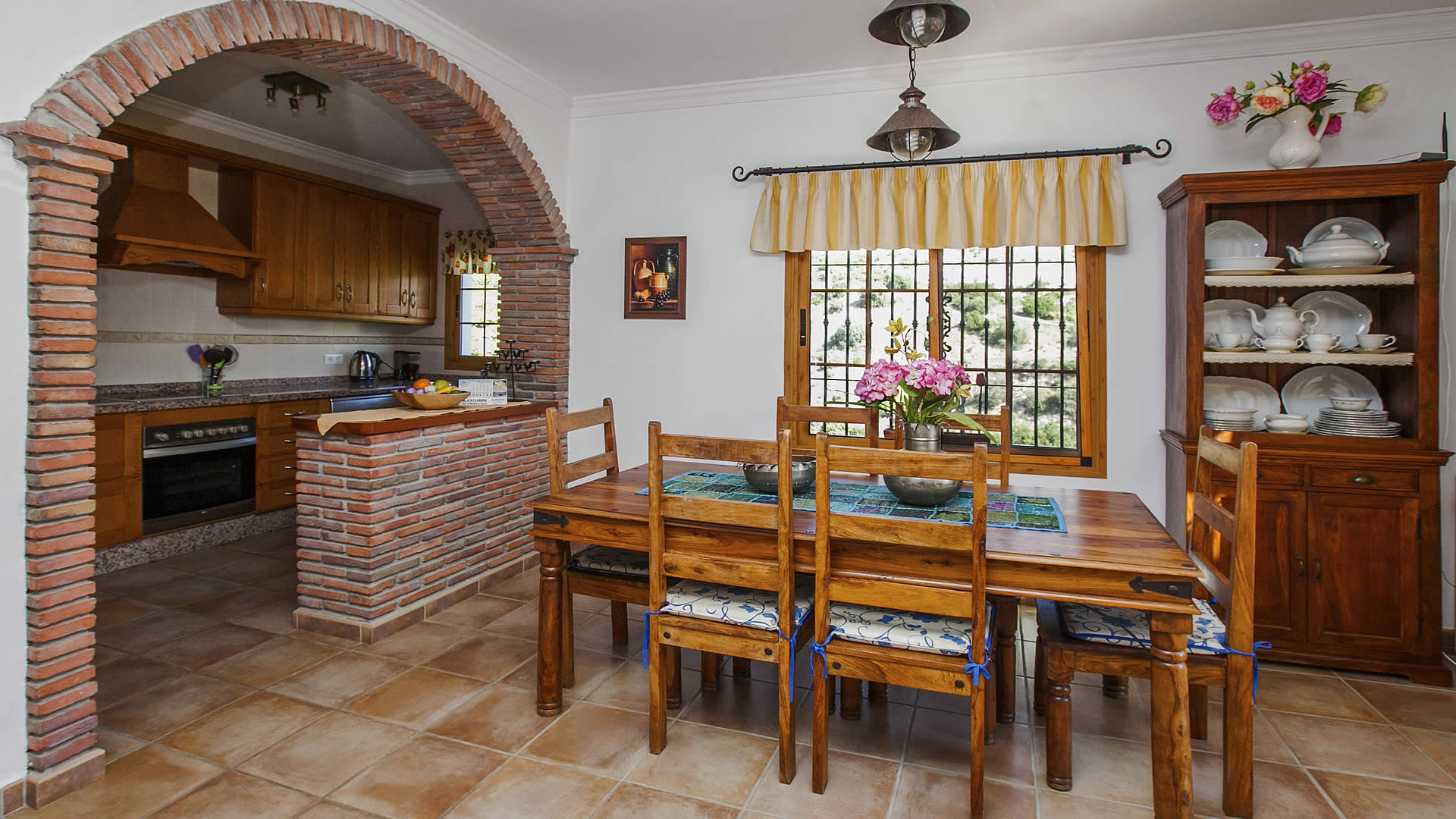 La zona de salón / comedor / cocina se organiza en un espacio abierto, confortable y acogedor, y disfruta de vistas a Frigiliana, con dos ventanales que dan acceso a una terraza cubierta. El salón tiene un sofá para 4 personas, chimenea, una mecedora, y está equipado con TV satélite y equipo de música. La cocina está totalmente equipada con nevera / congelador, vitrocerámica con 4 fuegos, microondas y lavavajillas. Los 3 dormitorios dobles (1 con cama de matrimonio y 2 con dos camas individuales respectivamente) están decorados en un estilo relajante con coloridas ropas de cama y bonitos cuadros. Hay un baño completo con bañera-ducha, lavabo y WC, y un cuarto de ducha con lavabo y WC. Una chimenea de leña y radiadores eléctricos movibles están disponibles para los días más fríos en temporada baja. La casa dispone de conexión a internet a través de WIFI (sin coste).