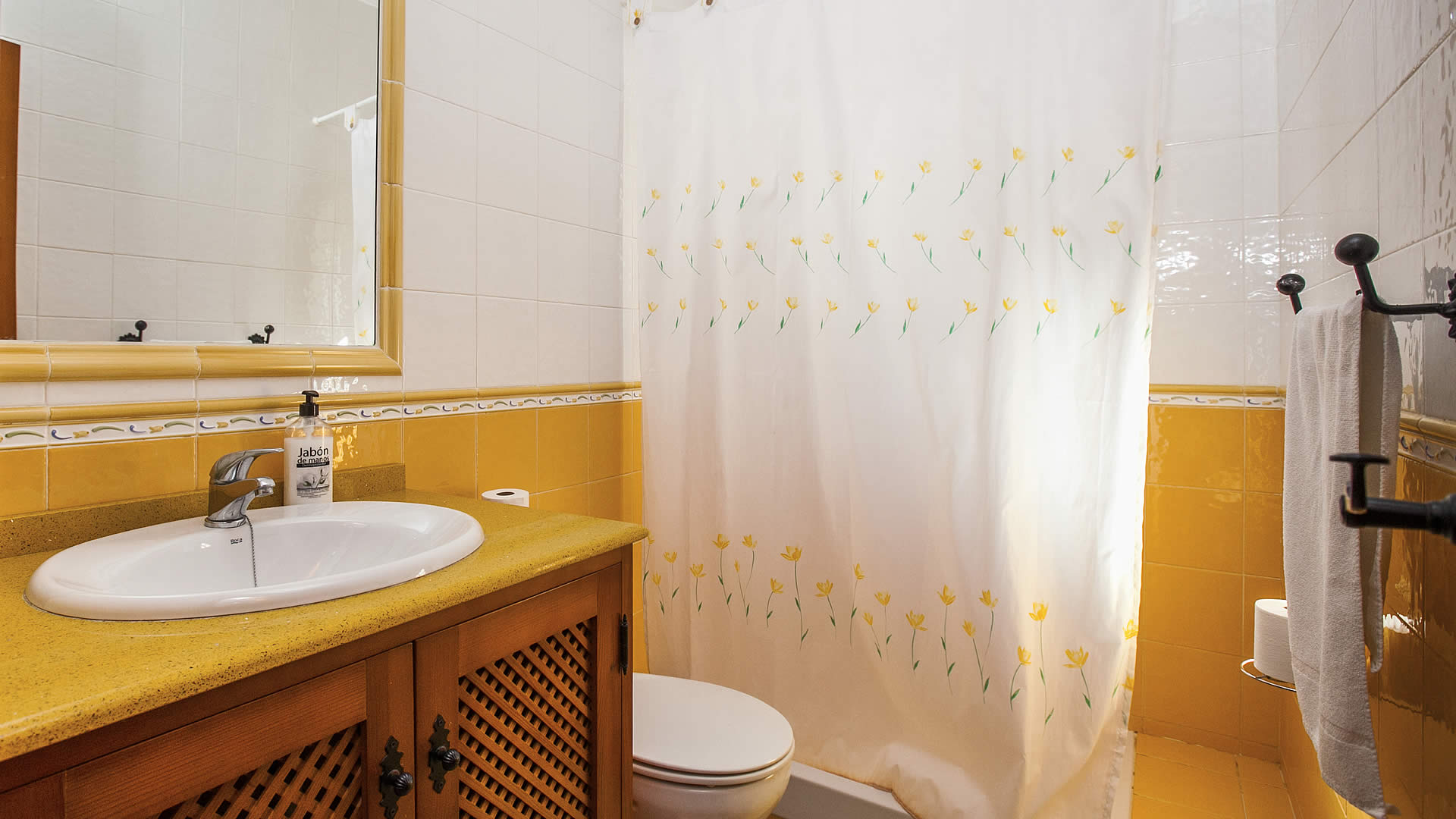 - cuarto de baño con lavabo, ducha y water