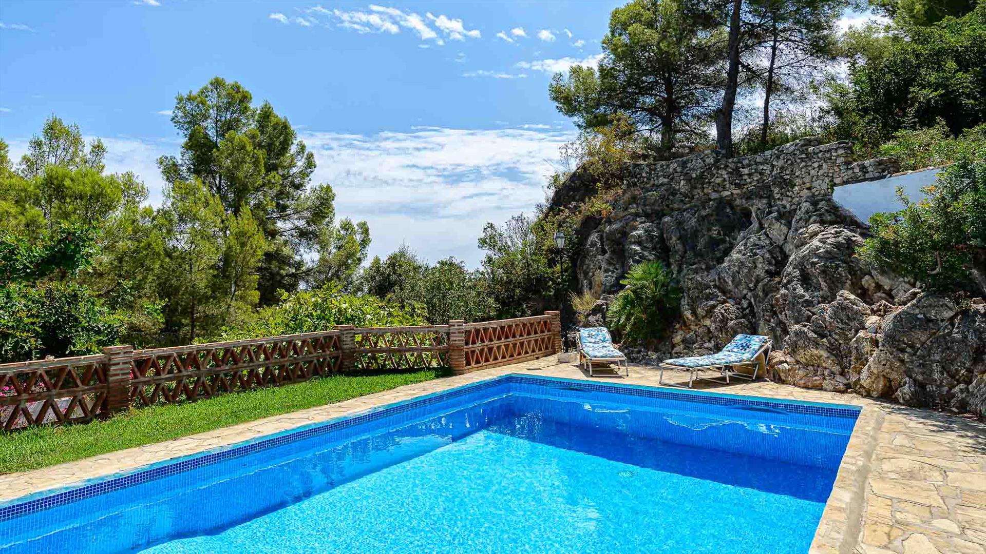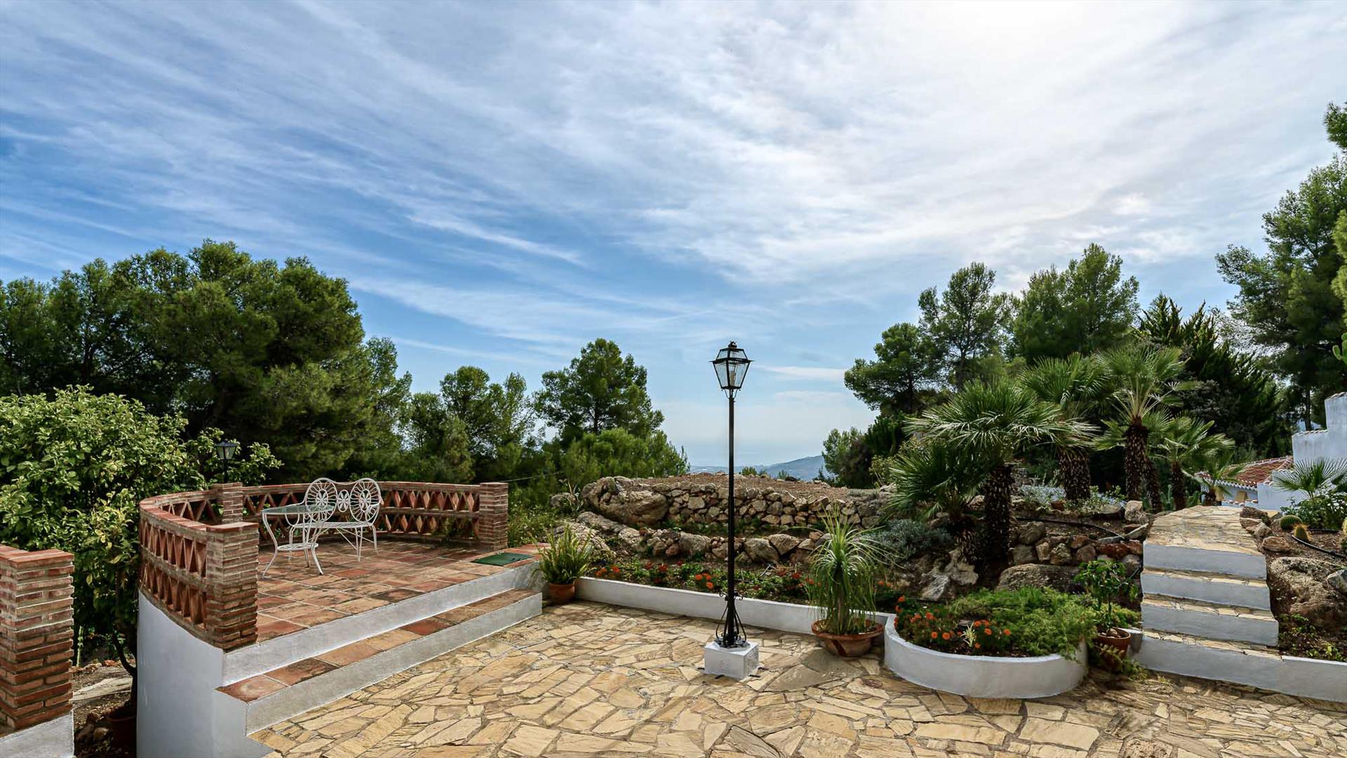 Parcela de 1.500 m2 con terrazas, jardines, césped y piscina de 50 m2. Todo con maravillosas vistas al mar y la montaña.
