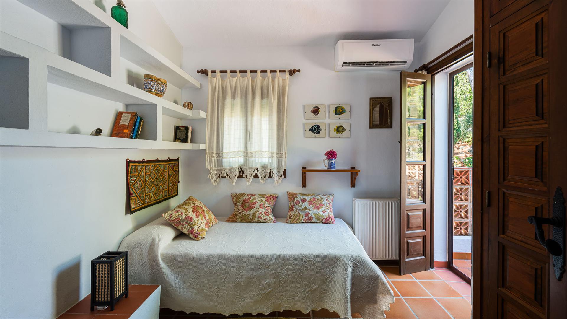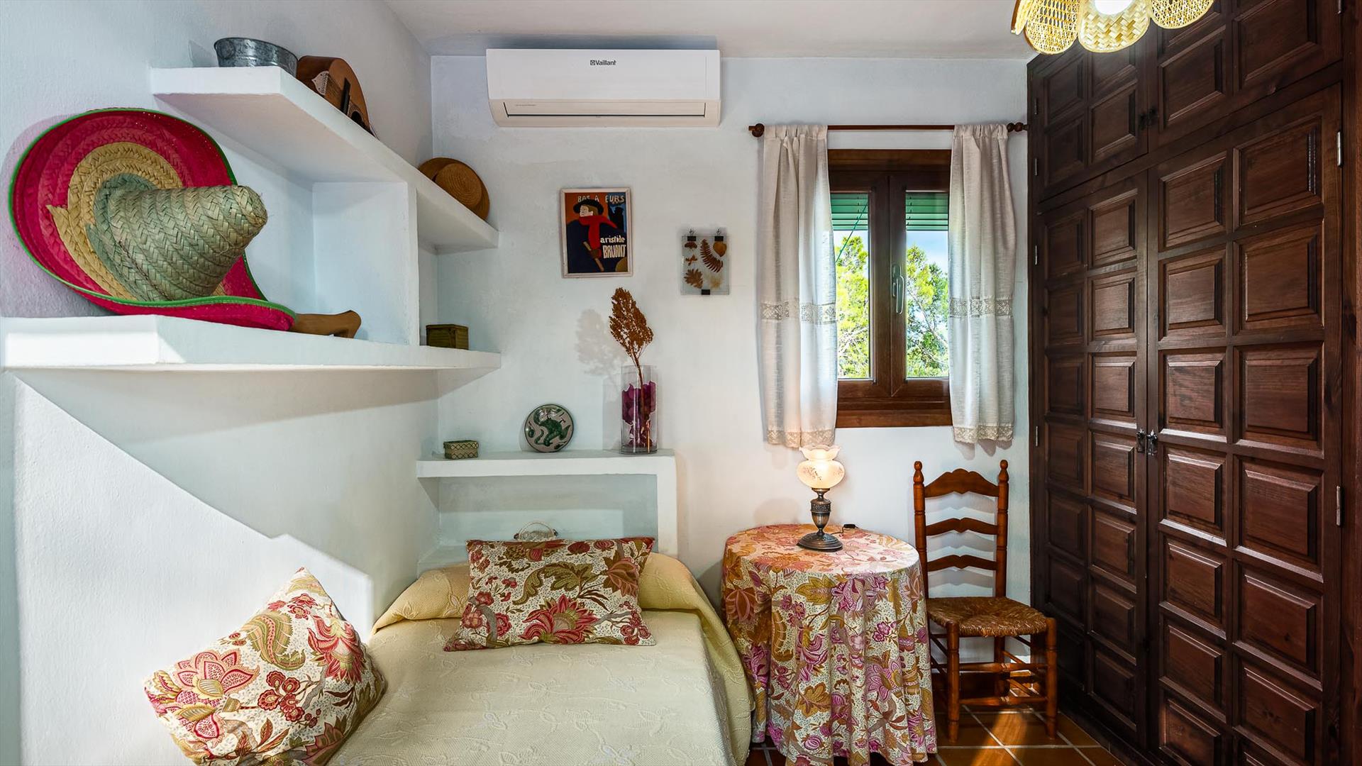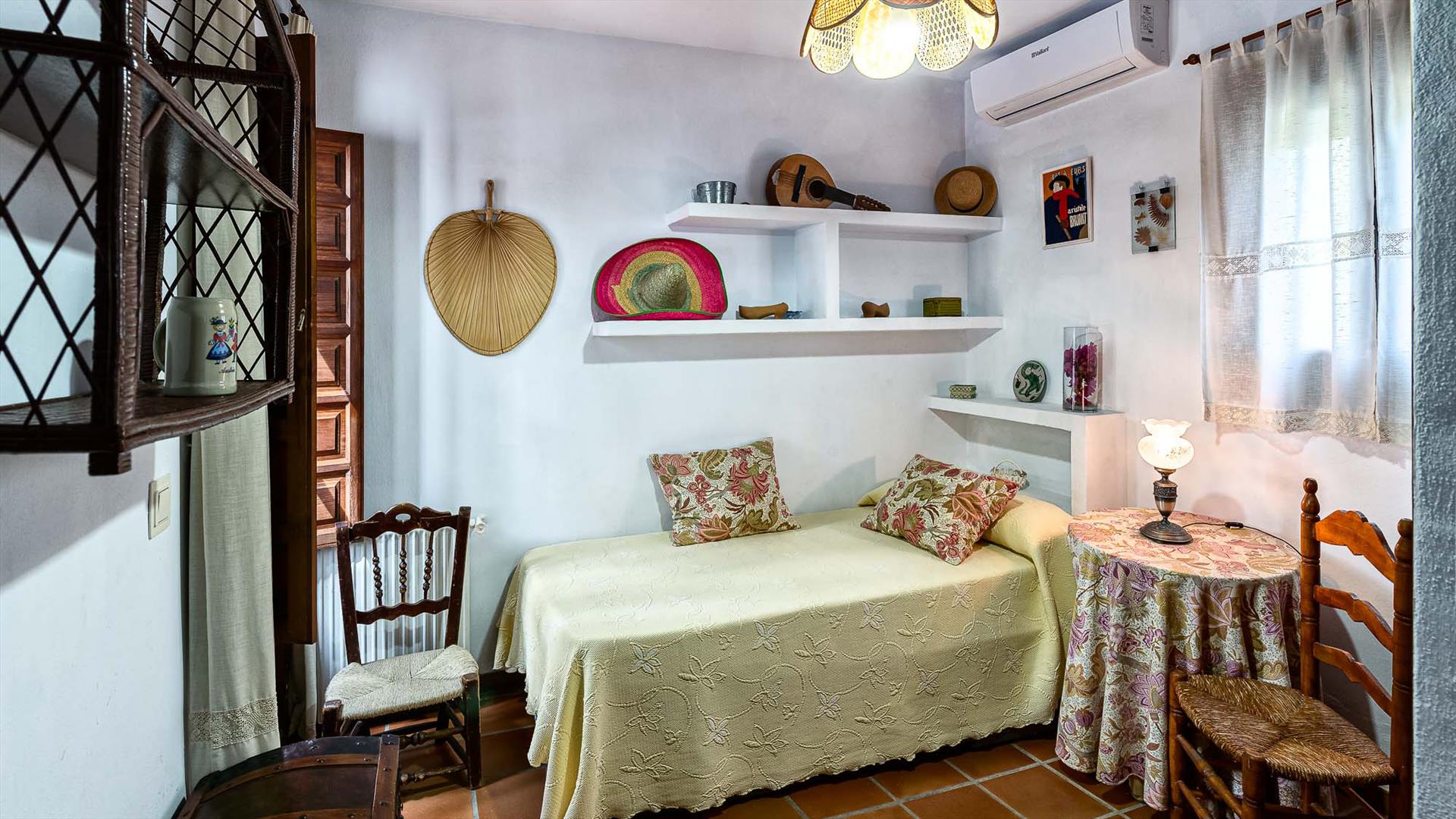 - dormitorio con cama individual y aire acondicionado