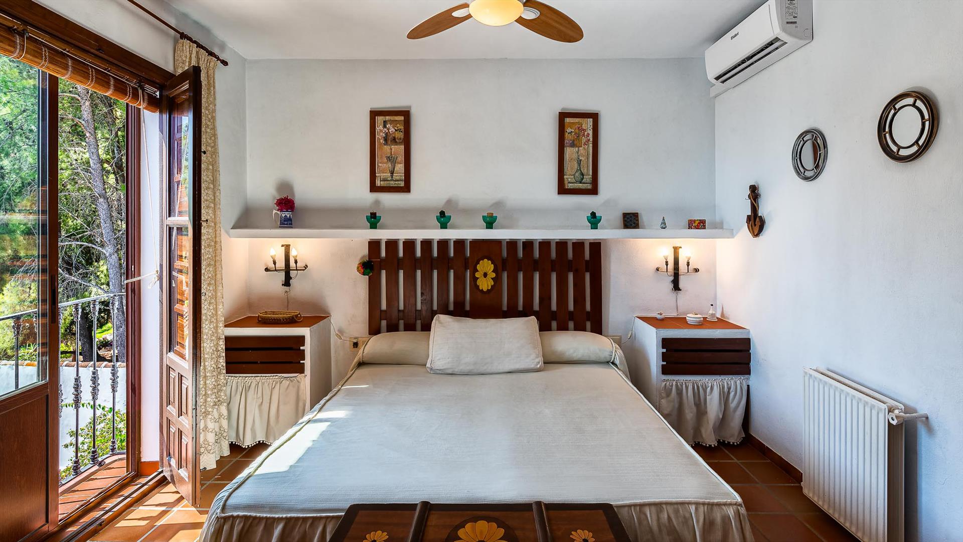- dormitorio con cama doble y aire acondicionado