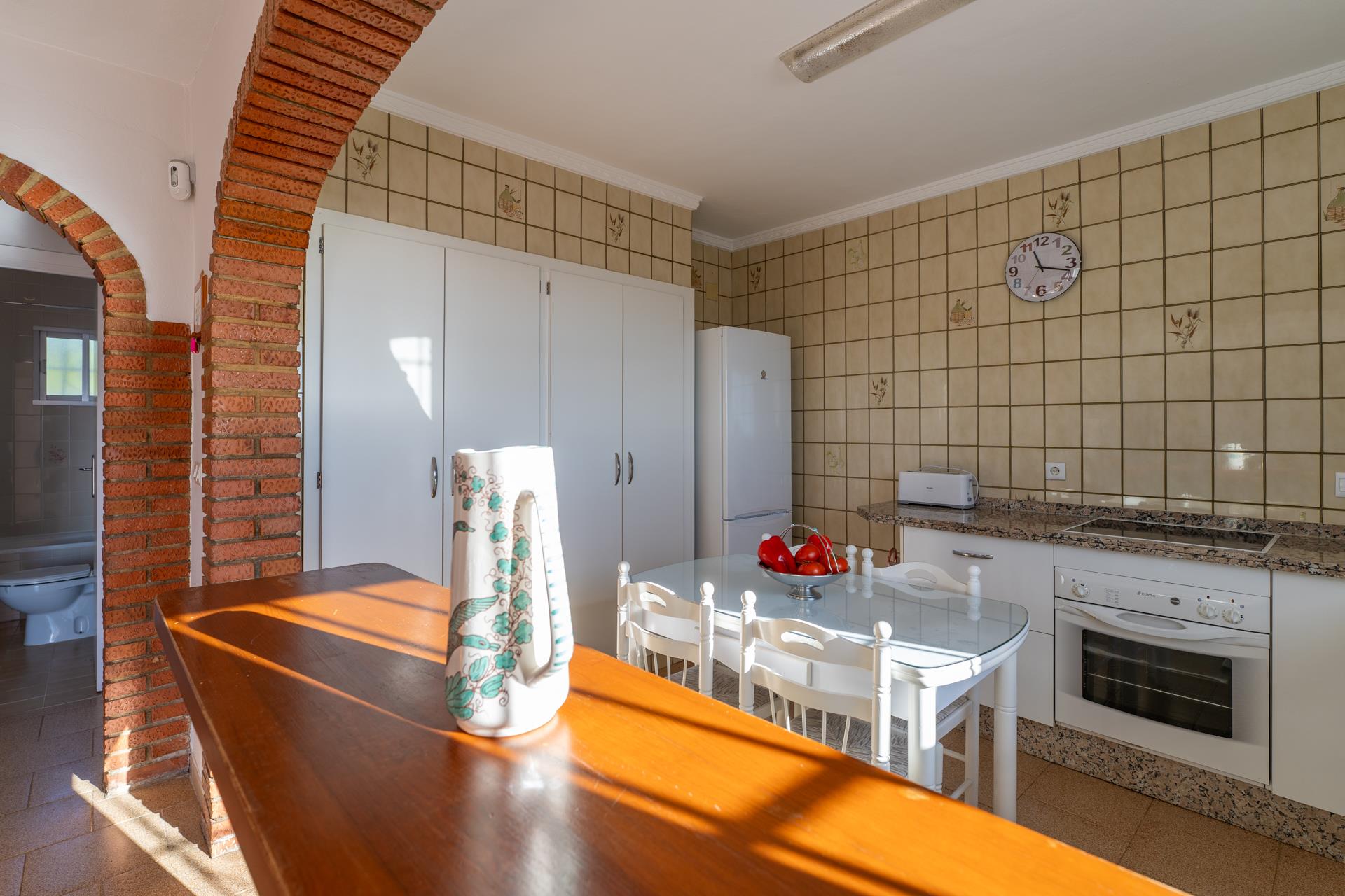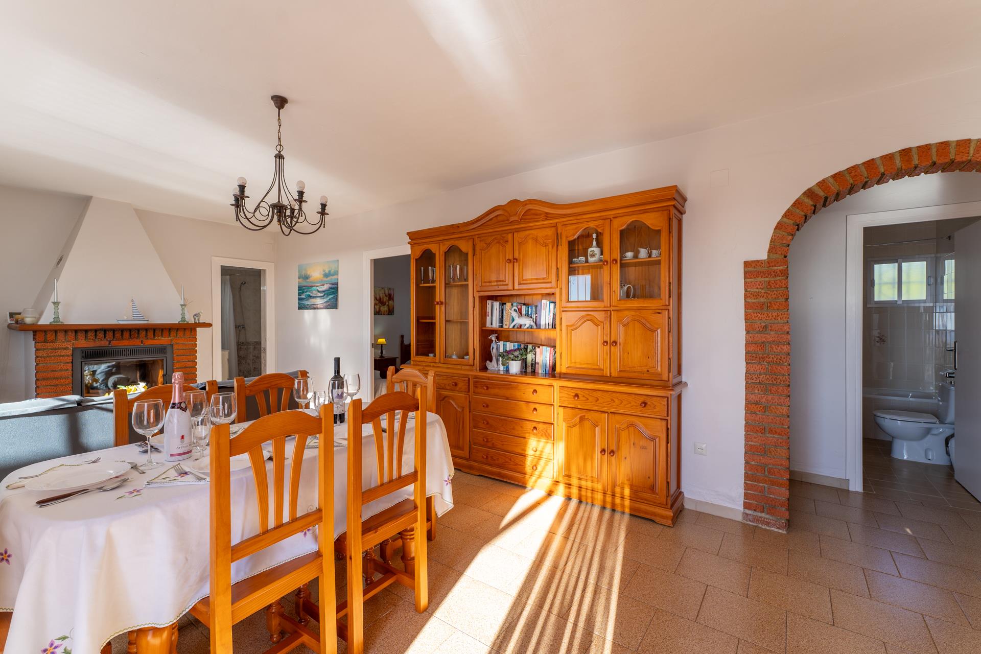 Con todas las estancias en la misma planta y un interior muy bien cuidado, la comodidad de esta casa supera cualquier expectativa. El salón-comedor dispone de chimenea, mesa comedor para 6, 2 sofás y TV por satélite. La cocina semi-abierta está muy bien equipada con placa vitrocerámica de 4 fuegos, horno eléctrico, microondas, frigorífico/congelador, lavavajillas y lavadora. Hay también una mesa de comedor adicional en la cocina. Tres dormitorios (1 con cama de matrimonio y 2 dobles con dos camas respectivamente) comparten un cuarto de baño completo y un cuarto de ducha.