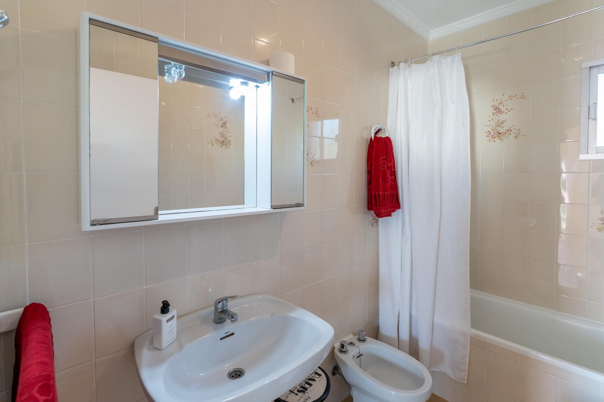 - cuarto de baño con lavabo, combinación de ducha y bañera y water