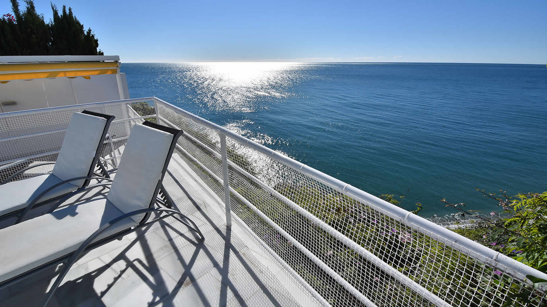 Para familias con niños, nos es grato informarle de que la piscina privada está vallada y que también hay una piscina compartida donde los niños podrán hacer nuevos amigos. En la primera planta tenemos otra terraza soleada con vistas al mar – esta terraza es accesible a través de dos dormitorios dobles.