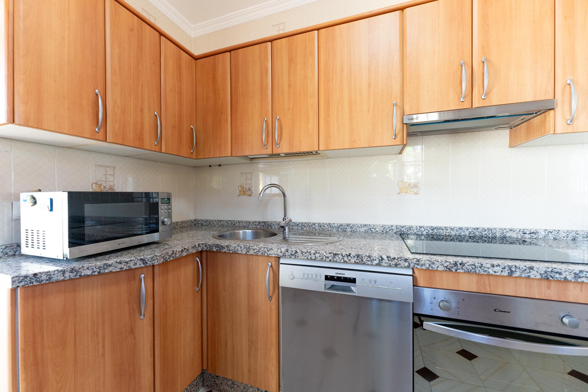 • cocina con cocina de gas, horno eléctrico, microondas, lavavajillas, refrigerador-congelador, cafetera, calentador de agua, tostador y exprimidor