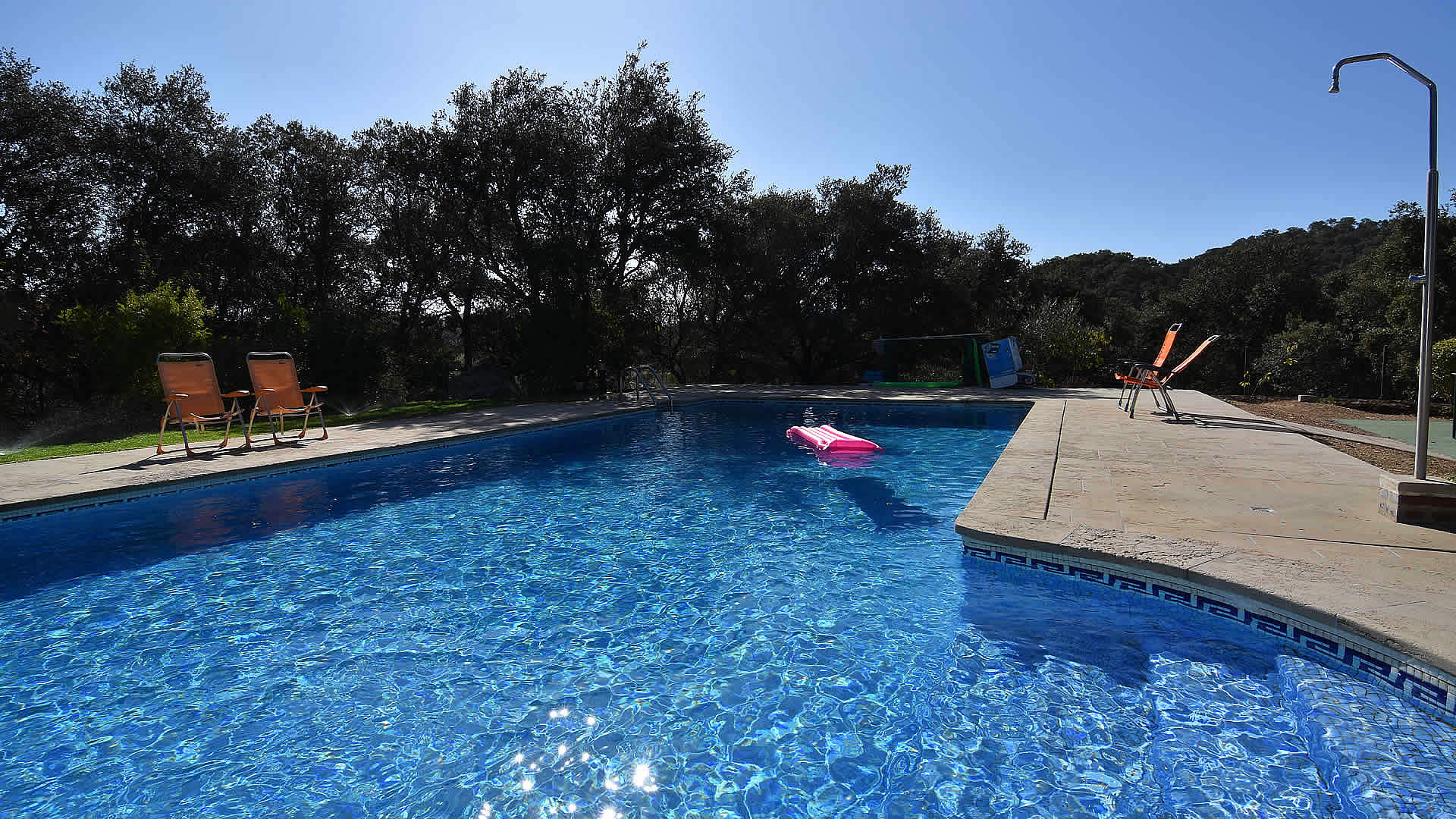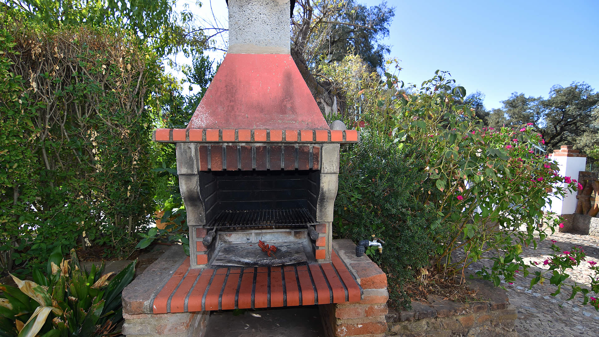 La casa esta situada en la esquina del cortijo que describimos en cortijo Aracena 004 y tiene su propio jardín con mesa, sillas y barbacoa. El cortijo se encuentra en pleno campo, pues hay que cruzar un bello paraje de encinas y alcornocales. La gran piscina es compartida con la casa rural cortijo Aracena 004 y los propietarios. Los niños de ellos, cuando no tienen colegio, pasan su tiempo jugando en la granja y en la piscina.
