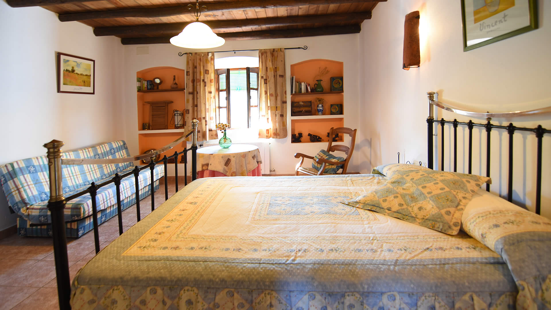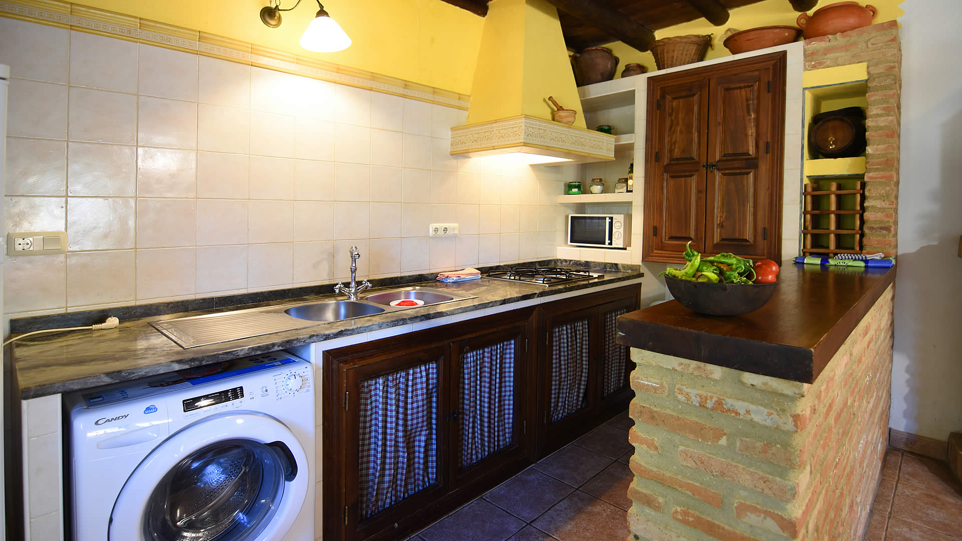 La casa es de dos plantas y está decorada en estilo rústico y típico de la zona. La planta baja esta el salón, la cocina y un aseo. En la planta superior hay dos dormitorios, cada uno con un cuarto de baño. Uno de los dormitorios cuenta, además, con un sofá cama. El salón es muy acogedor con chimenea, sofá y televisión. La cocina tiene placa de gas de 4 fuegos, microondas, lavadora y los utensilios necesarios. Hay calefacción central.