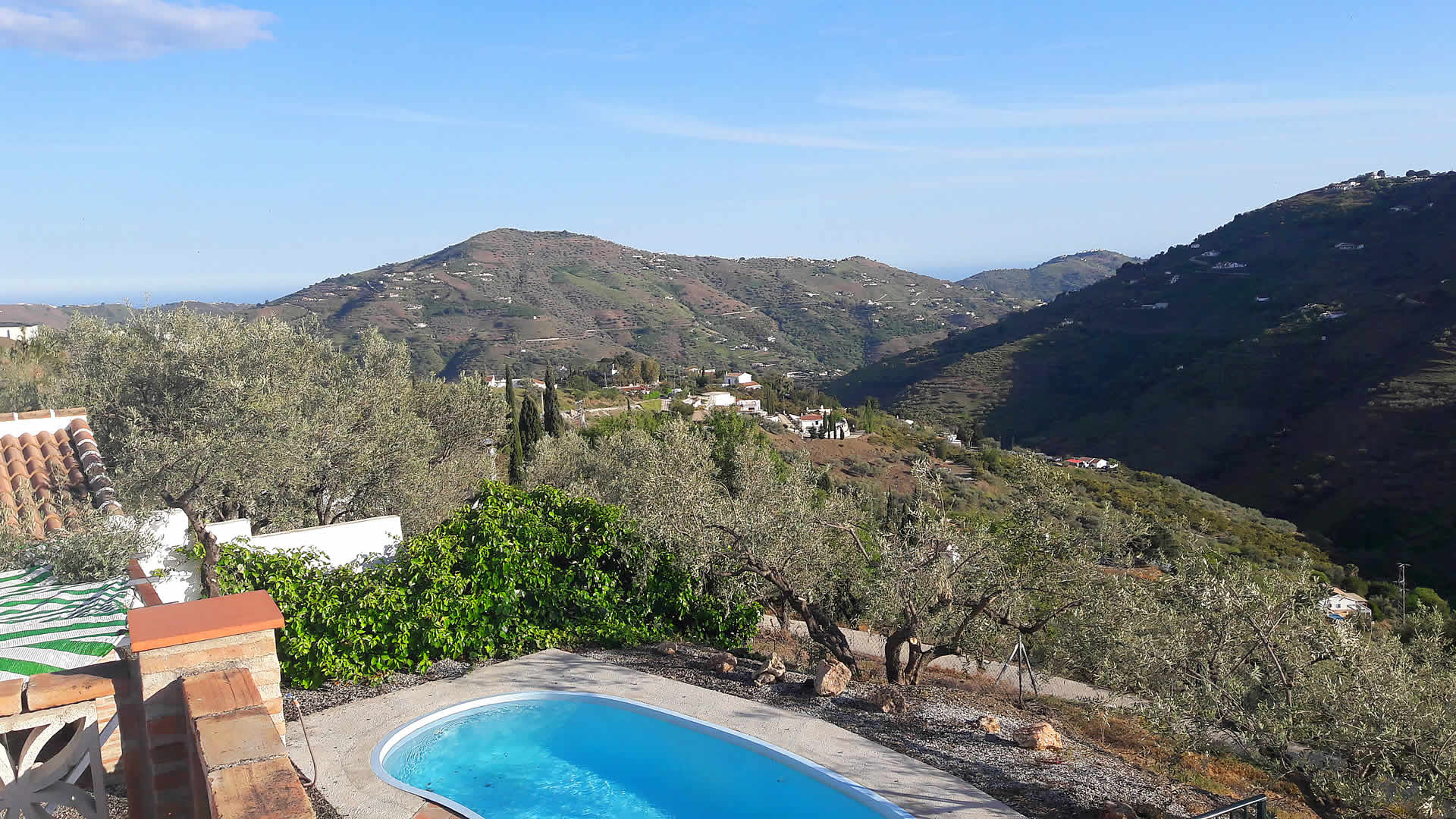 La casa se localiza a aproximadamente 2 kms del pueblo de Cómpeta, unos 5 minutos en coche, pero también se puede llegar andando en 30 minutos, un agradable paseo para disfrutar del paisaje. Entrando por la parte vieja del pueblo encontrará varias tabernas y restaurantes con una tradicional y rica cocina. Las calles son un enredo de callejones y plazitas que nos harán imaginar la historia que estos pueblos vivieron. El vino dulce de Competa es el resultado de una tradición histórica que con el tiempo ha sabido ganar prestigio. Cómpeta está dentro de la ruta de los Pueblos Blancos de la Axarquía malagueña y se sitúa a unos 15km de las playas de Nerja y Torrox. Su Parque Natural de la Sierra de Tejeda y Almijara, es idóneo para hacer rutas de senderismo, 4x4 o bicicleta de montaña. En el exterior la casa dispone de una zona de barbacoa resguardada del sol por un techo de cañizo. Además cuenta con una piscina privada (6 x 2,5m) rodeado por verde y con buena privacidad. Desde la terraza se tienen unas extraordinarias vistas del entorno.