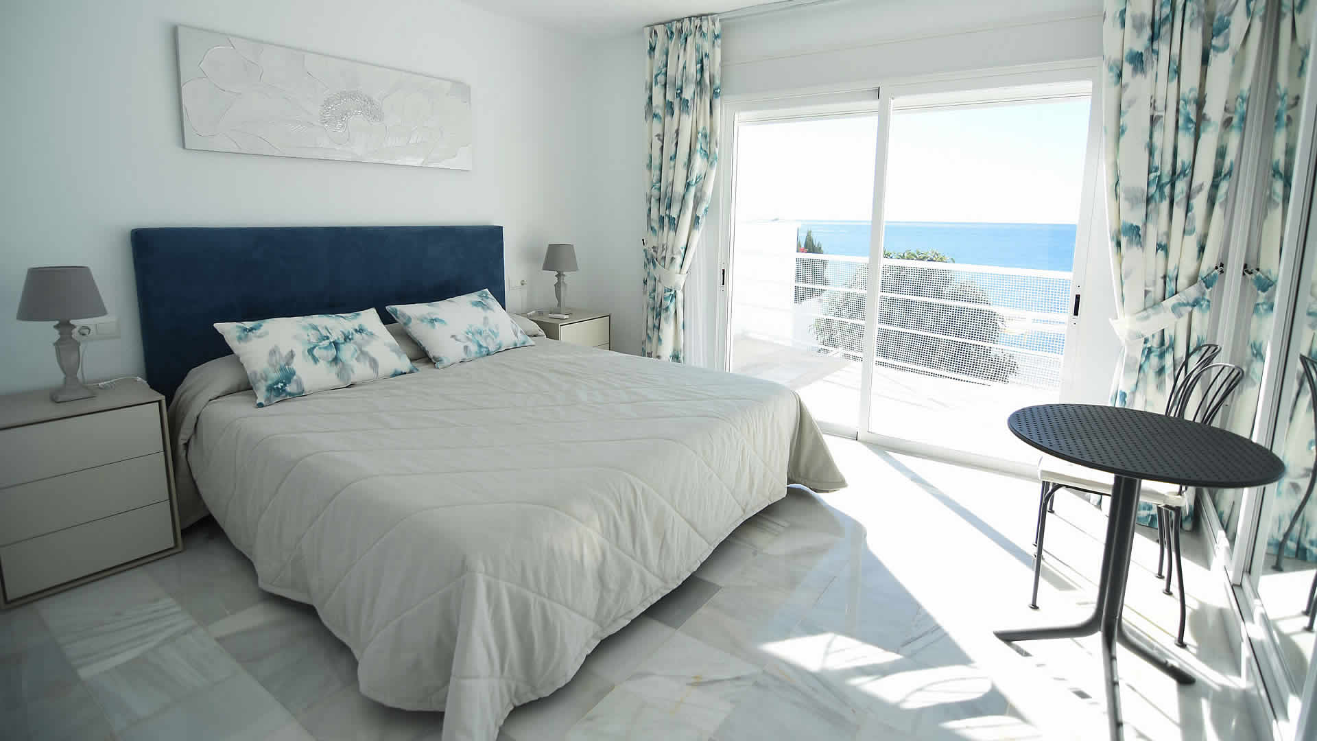 Para familias con niños, nos es grato informarle de que la piscina privada está vallada y que también hay una piscina compartida donde los niños podrán hacer nuevos amigos. En la primera planta tenemos otra terraza soleada con vistas al mar – esta terraza es accesible a través de dos dormitorios dobles.